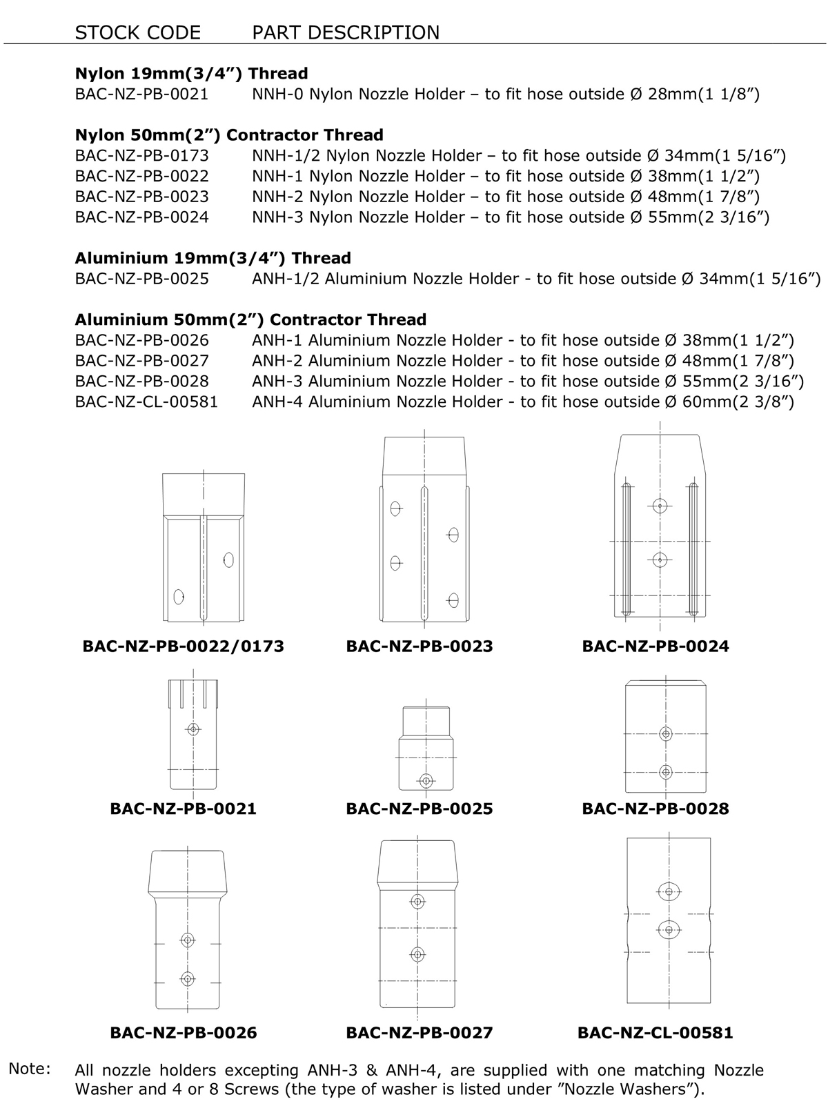 NNH and ANH Nozzle Holders